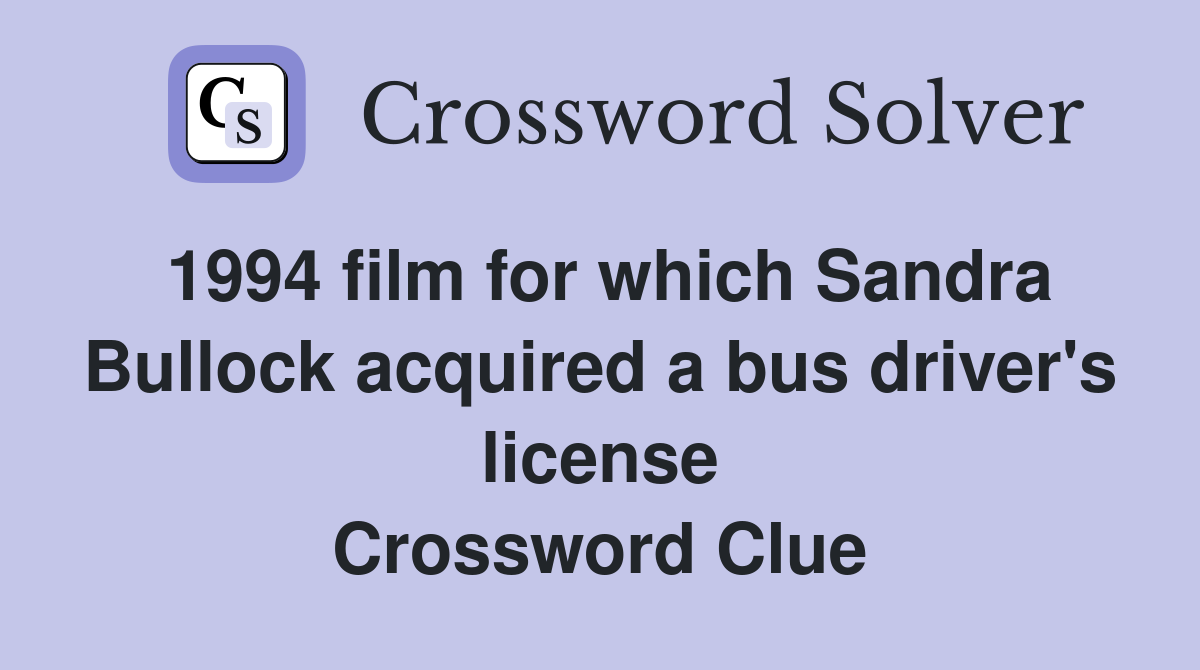 1994 film for which Sandra Bullock acquired a bus driver s license