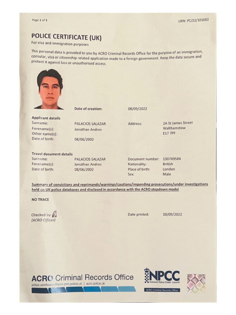 Two questions about ACRO Police Certificate : r/policeuk