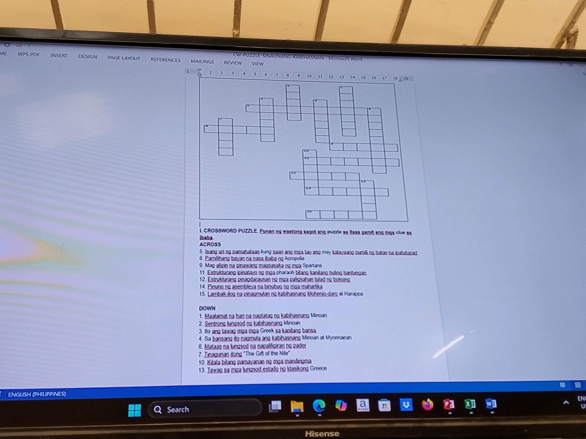 L CROSSWORD PUZZLE Punan ng wastong sagot StudyX