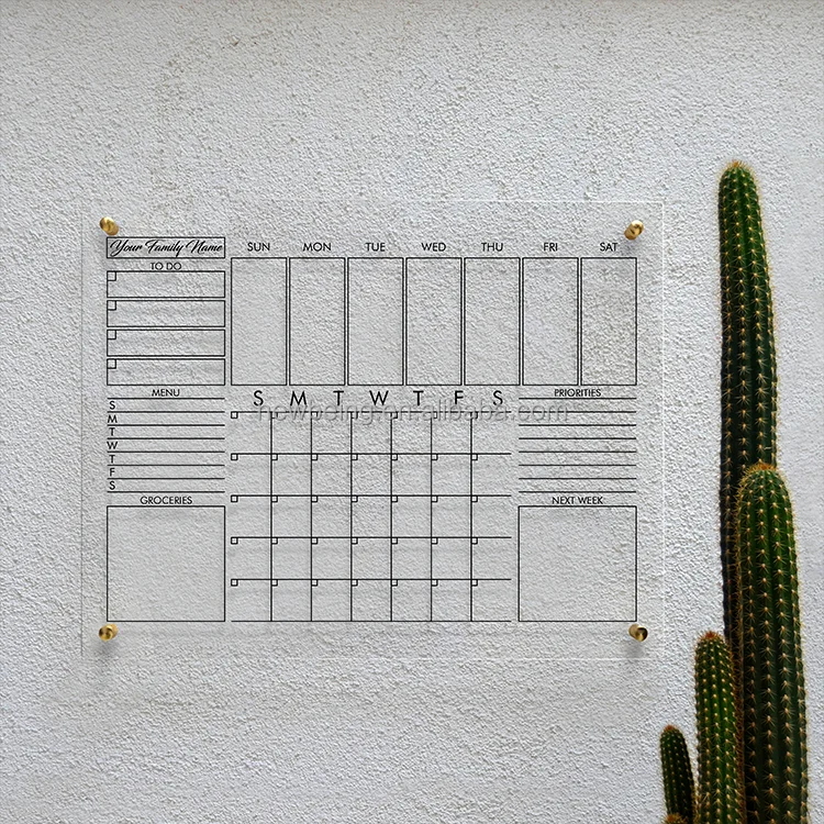Personalized acrylic calendar for wall acrylic dry erase board monthly