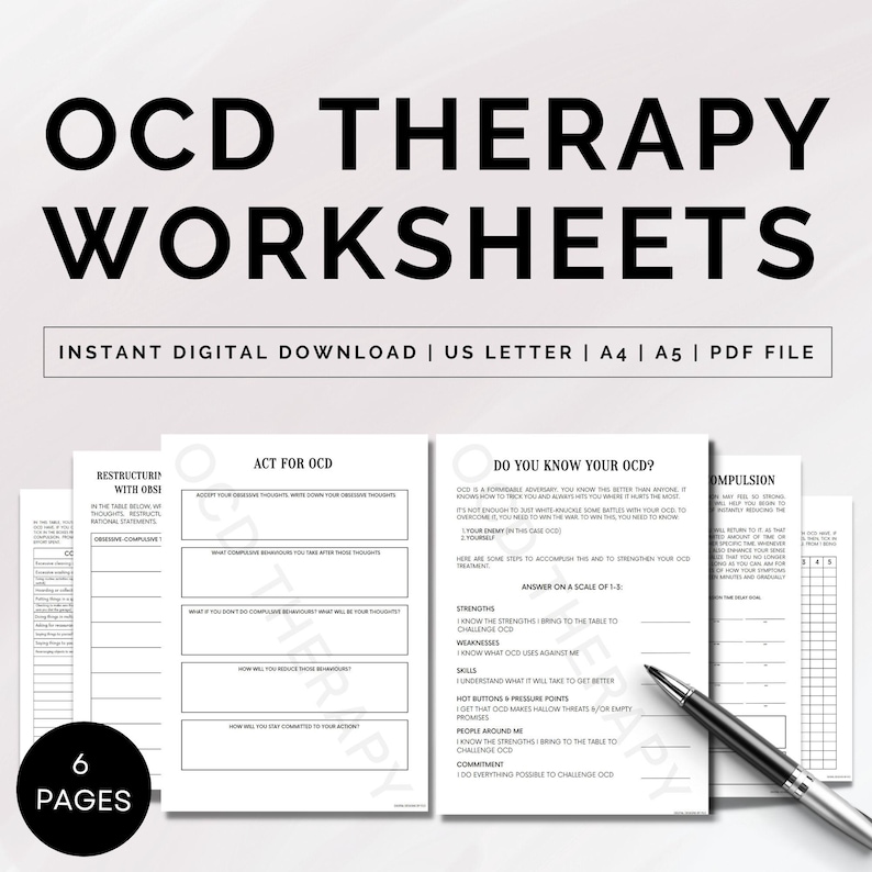 OCD Worksheets Bundle CBT Workbook for Adults Cognitive Behavioural