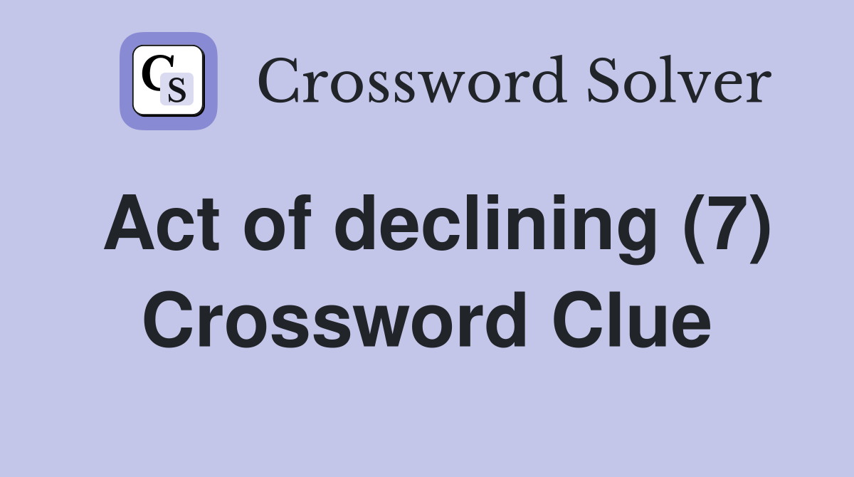 Act of declining (7) Crossword Clue Answers Crossword Solver