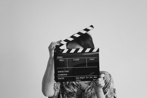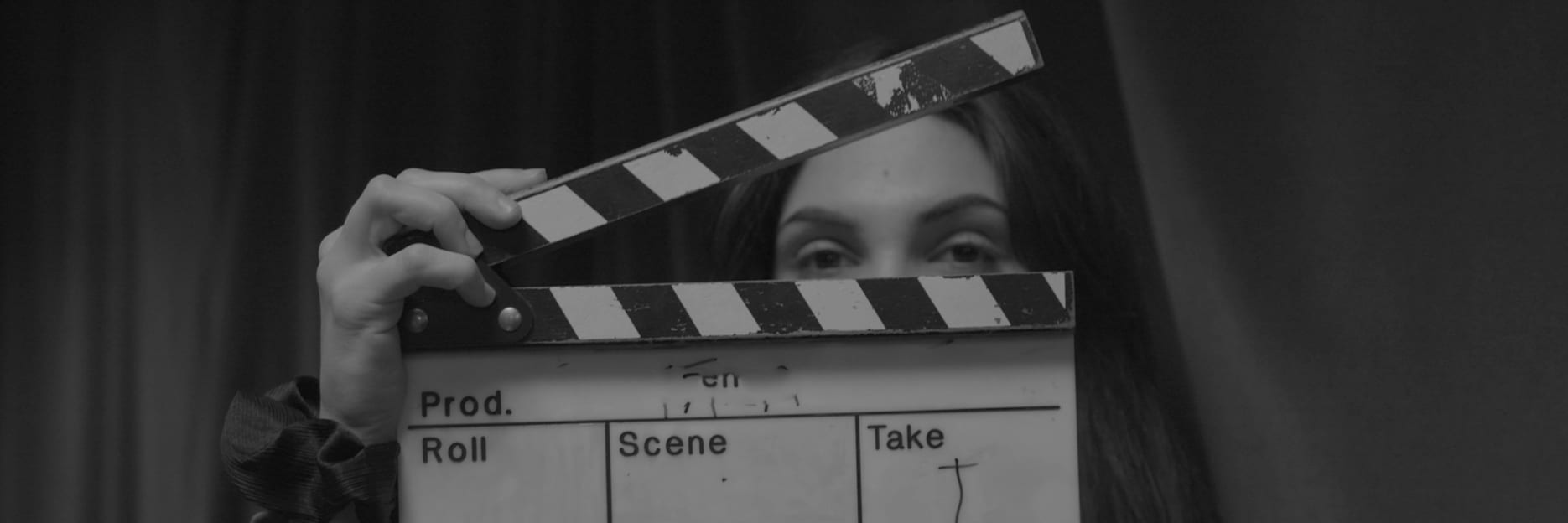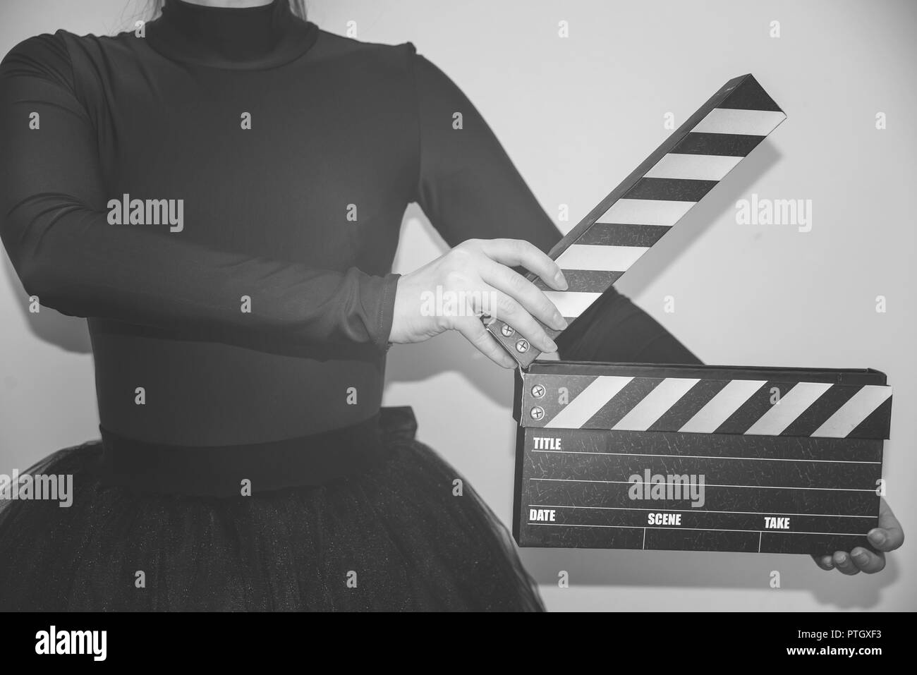 Seductive Actress with Clapperboard Vintage Black and White Closeup