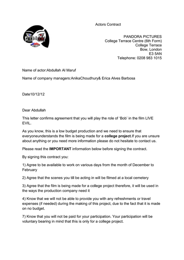 Here are some of the images for Acting Contract Template that we found in our website database.