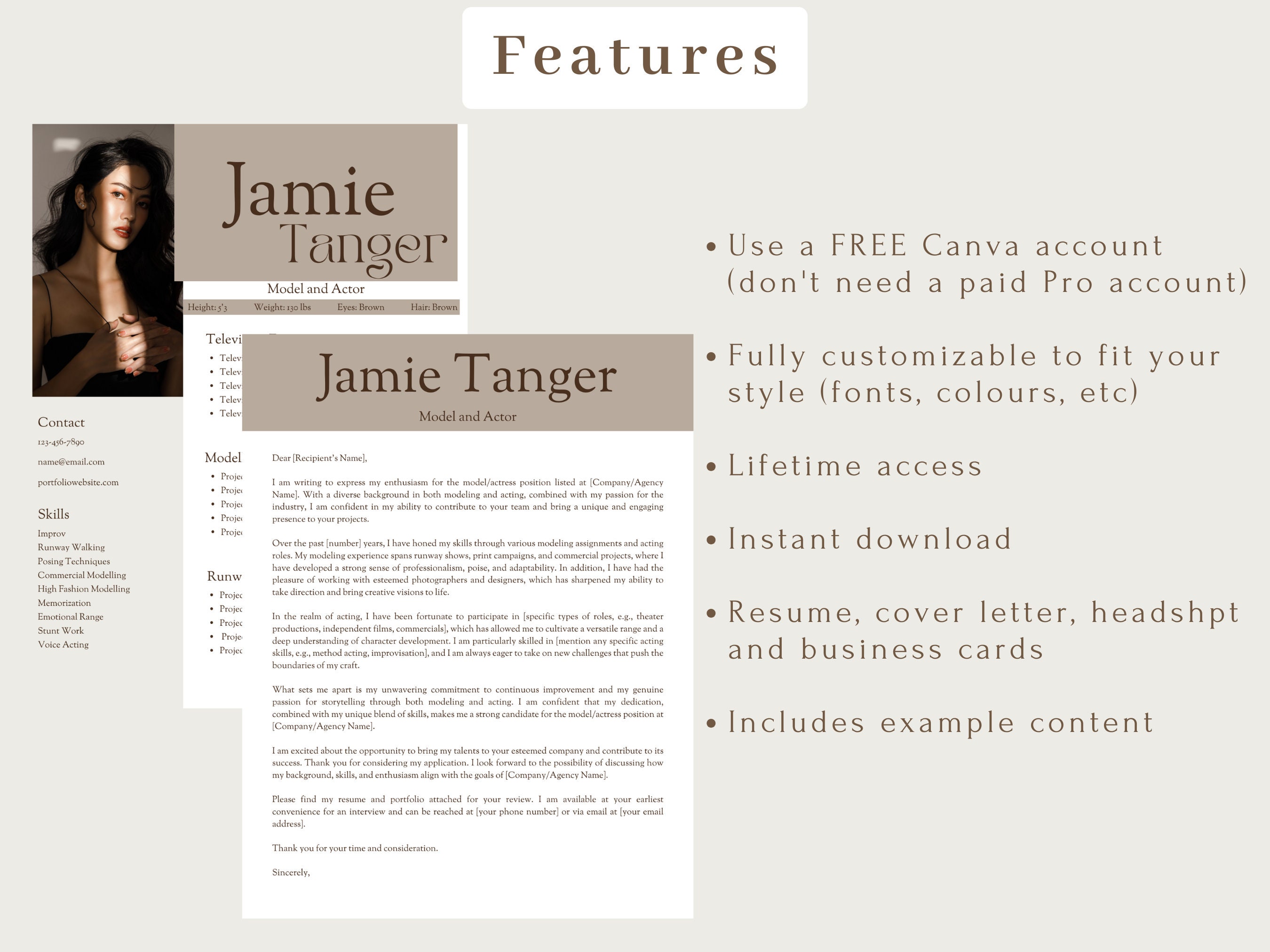 Professional Model Resume Template Pdf Male/ Female Fashion Model