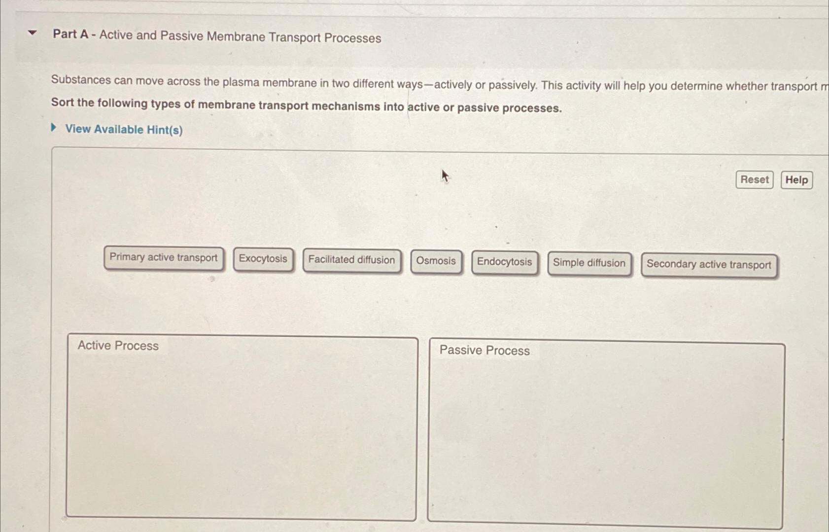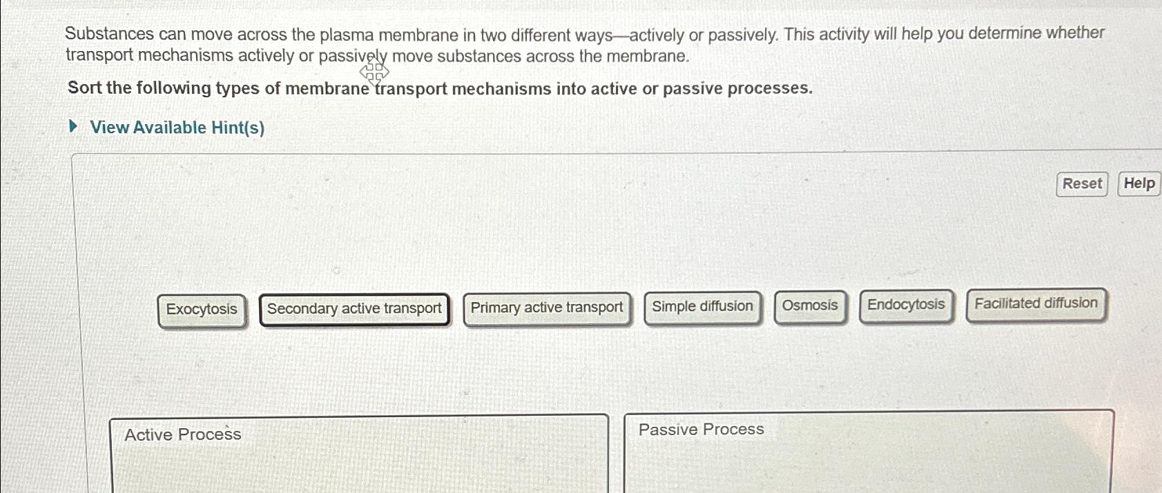 Solved Part A Active and Passive Membrane Transport Chegg com