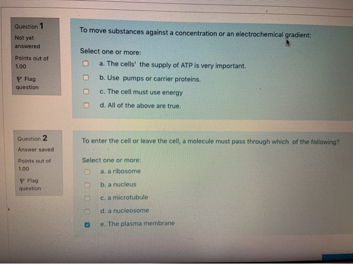 Solved Question 1 To move substances against a concentration Chegg com