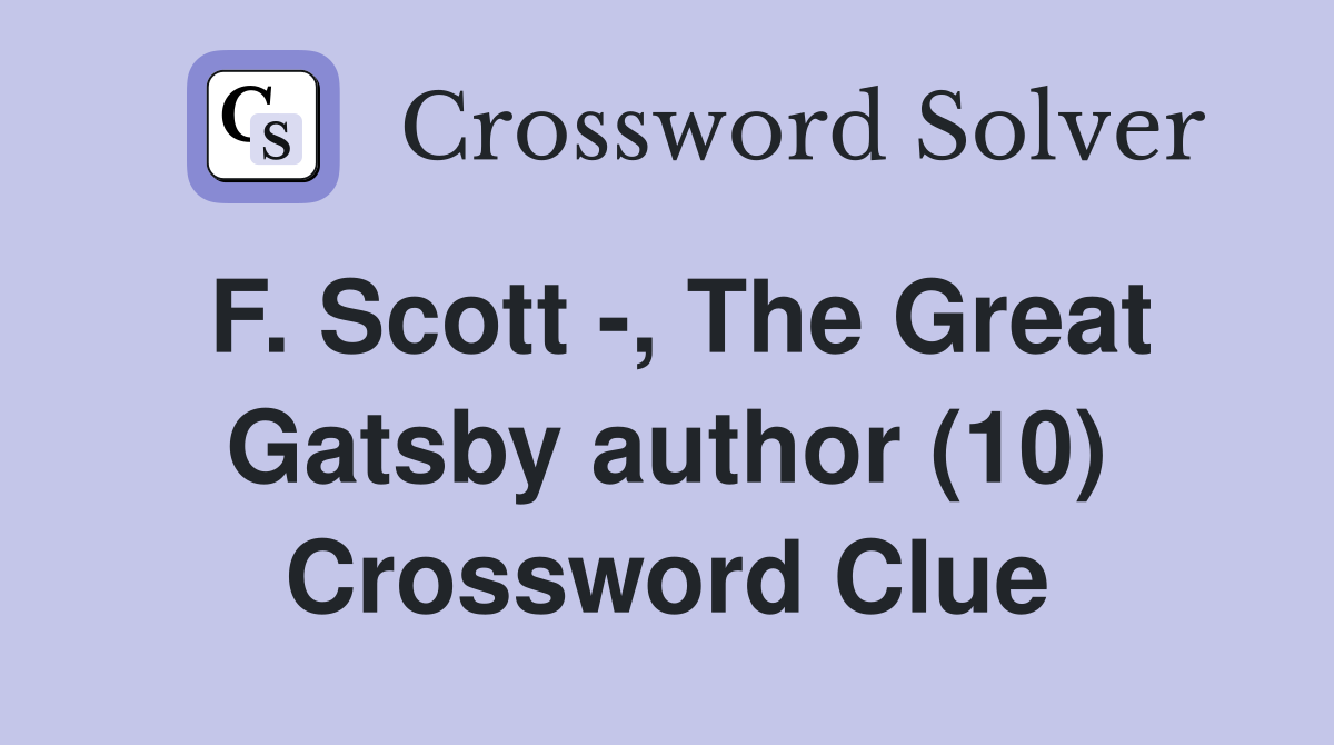 F Scott The Great Gatsby author (10) Crossword Clue Answers