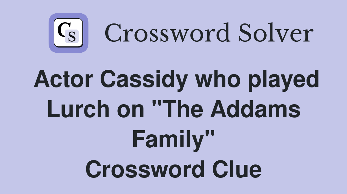 Actor Cassidy who played Lurch on quot The Addams Family quot Crossword Clue