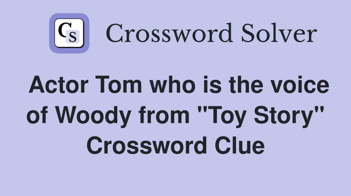 Actor Tom who is the voice of Woody from quot Toy Story quot Crossword Clue