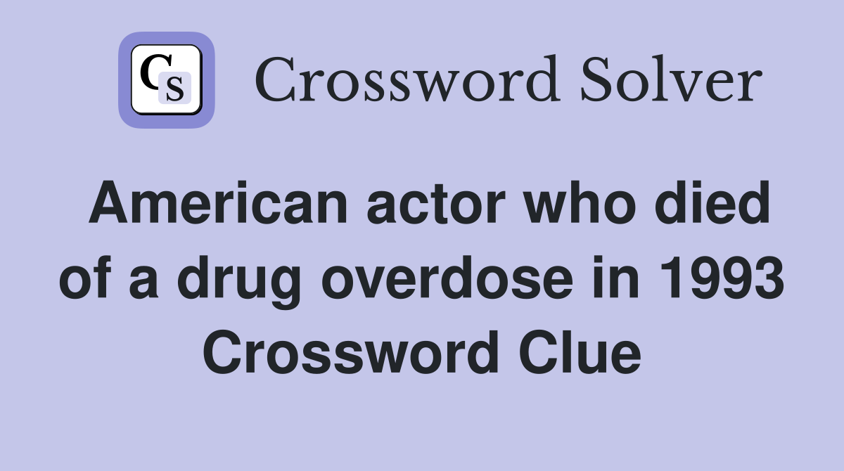 American actor who died of a drug overdose in 1993 Crossword Clue
