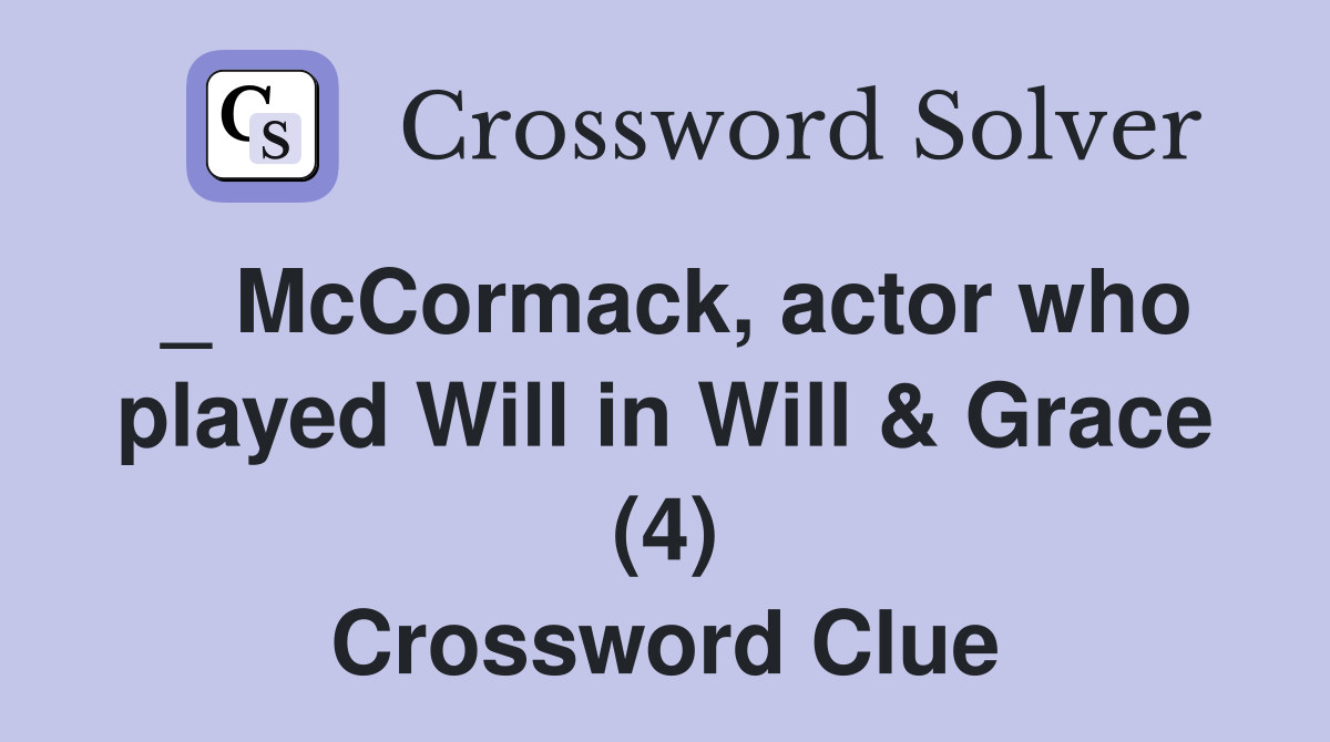 McCormack actor who played Will in Will Grace (4) Crossword Clue