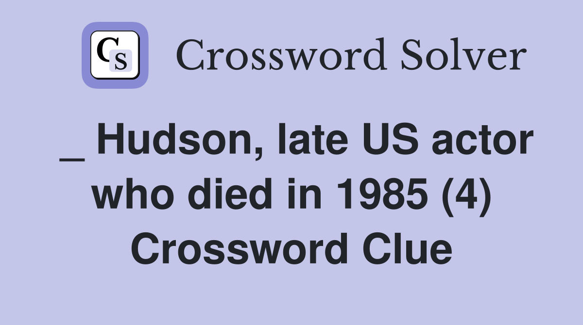 Hudson late US actor who died in 1985 (4) Crossword Clue Answers