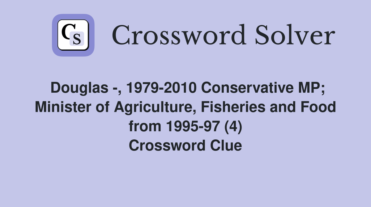 Douglas 1979 2010 Conservative MP Minister of Agriculture