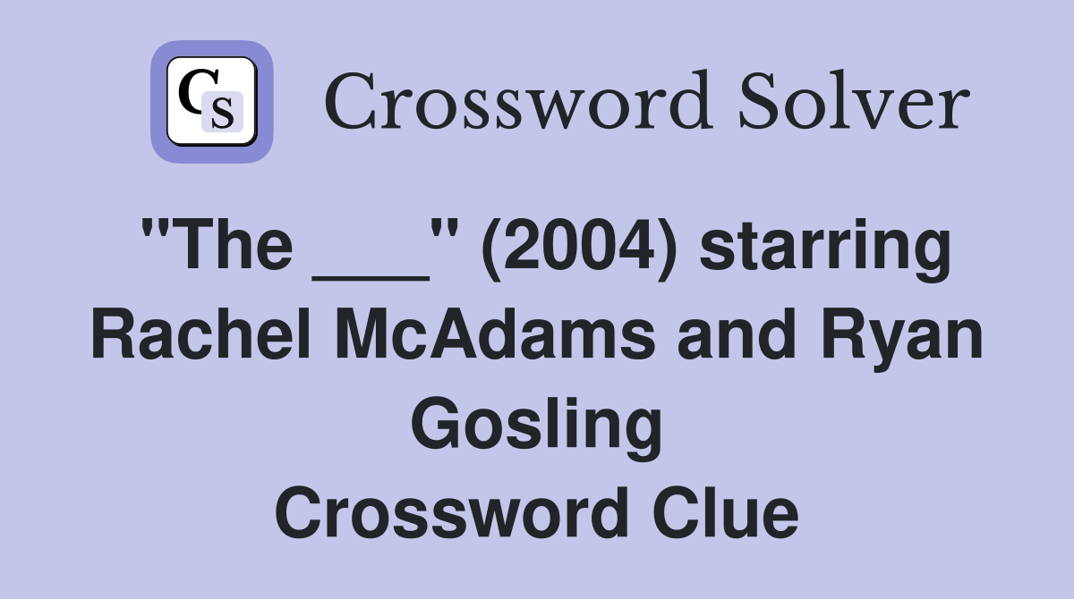 quot The quot (2004) starring Rachel McAdams and Ryan Gosling Crossword