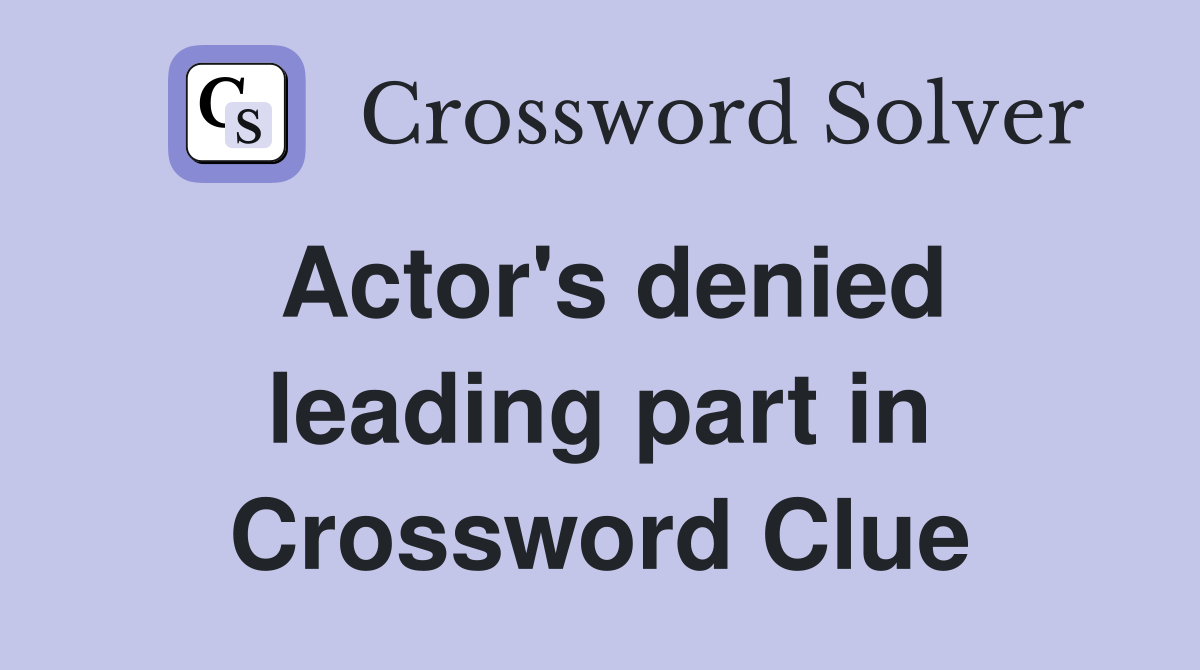 Actor s denied leading part in Crossword Clue Answers Crossword Solver