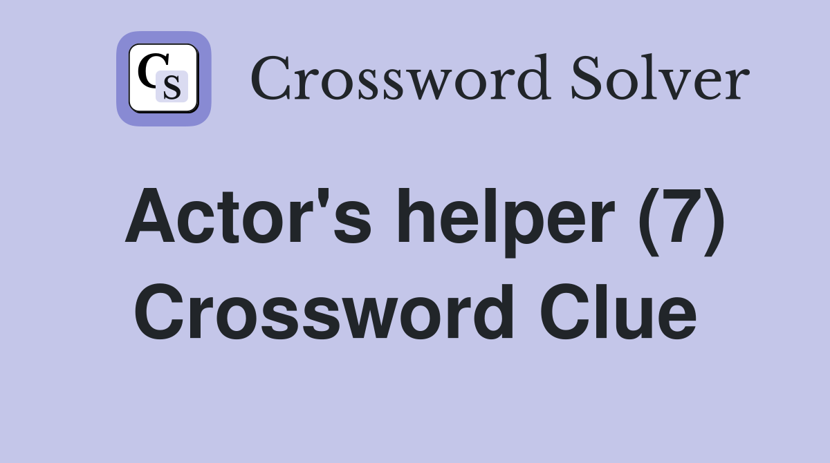 Actor s helper (7) Crossword Clue Answers Crossword Solver