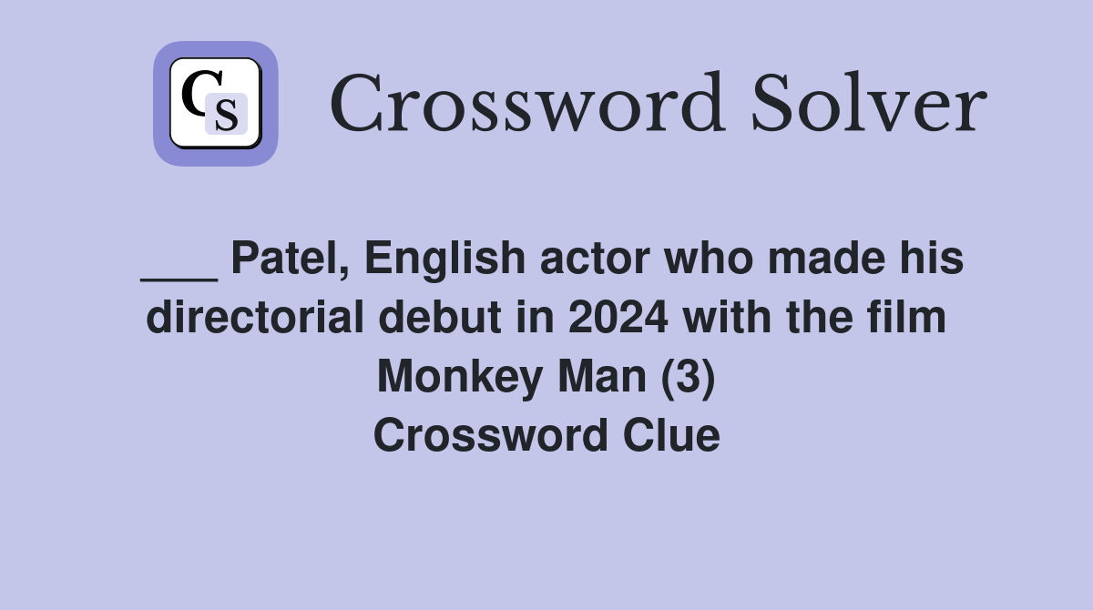 Monkey Man director and star Patel Crossword Clue Answers Crossword