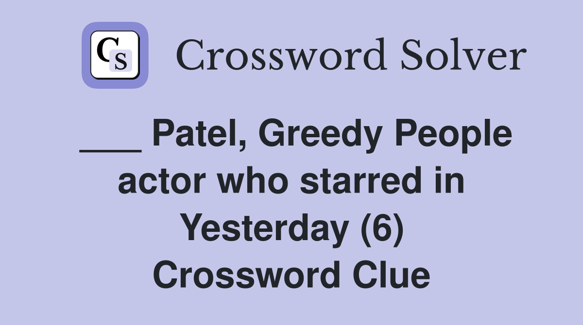 Patel Greedy People actor who starred in Yesterday (6) Crossword