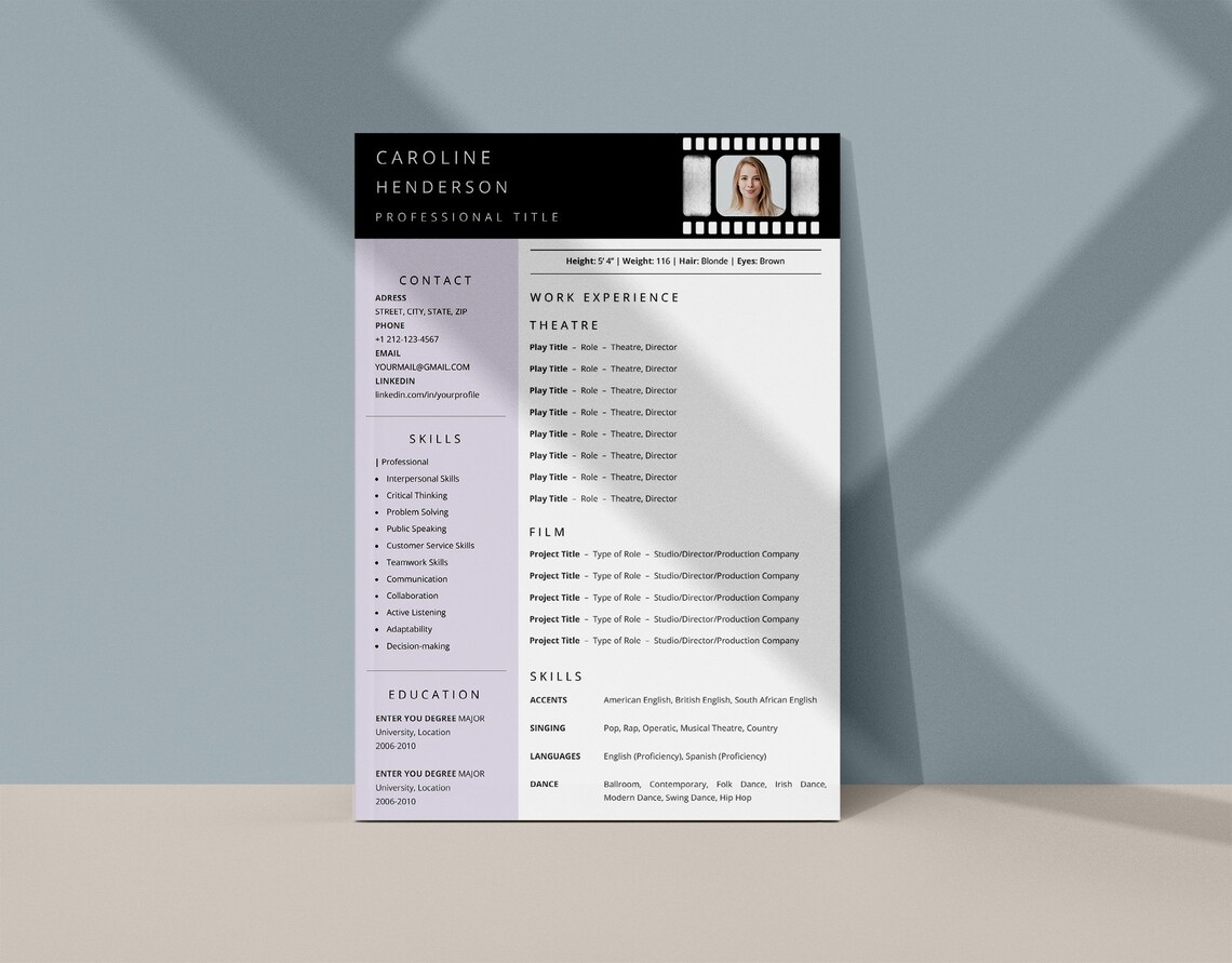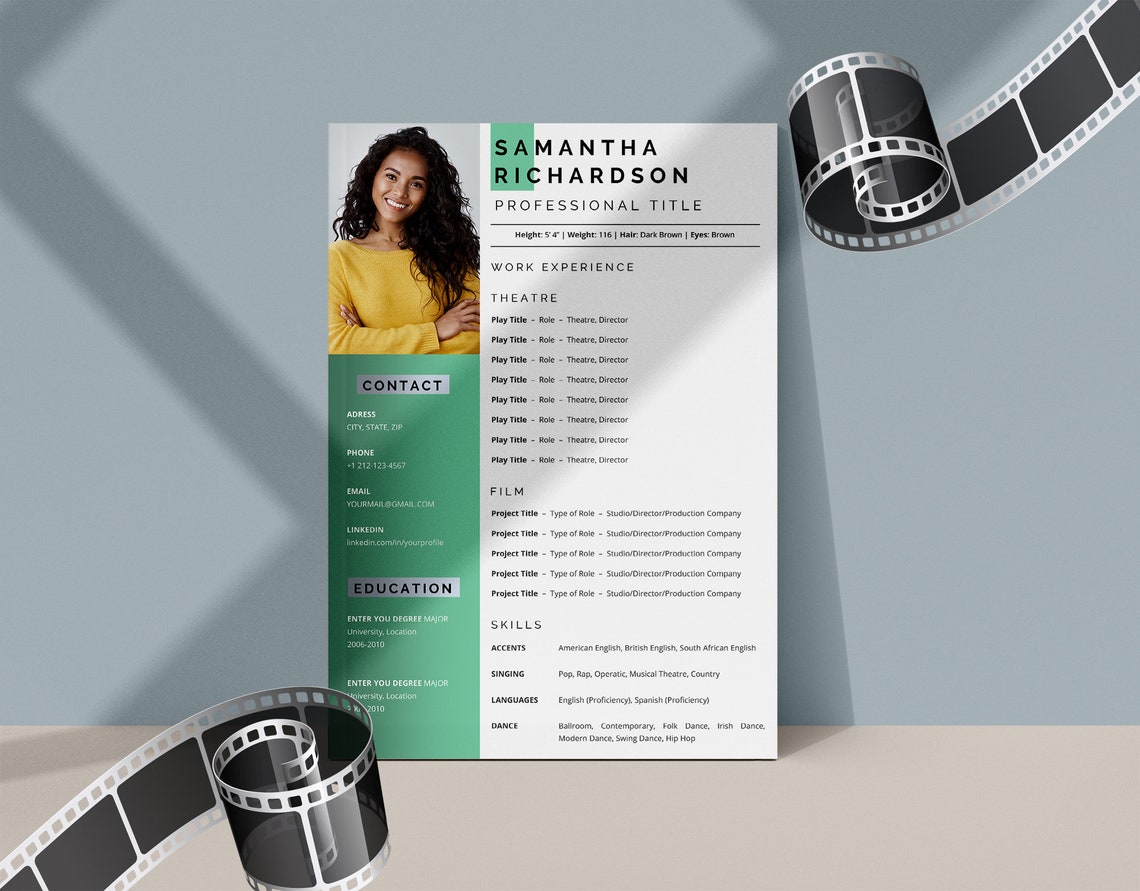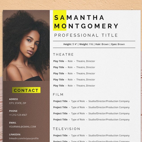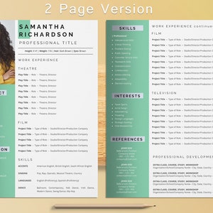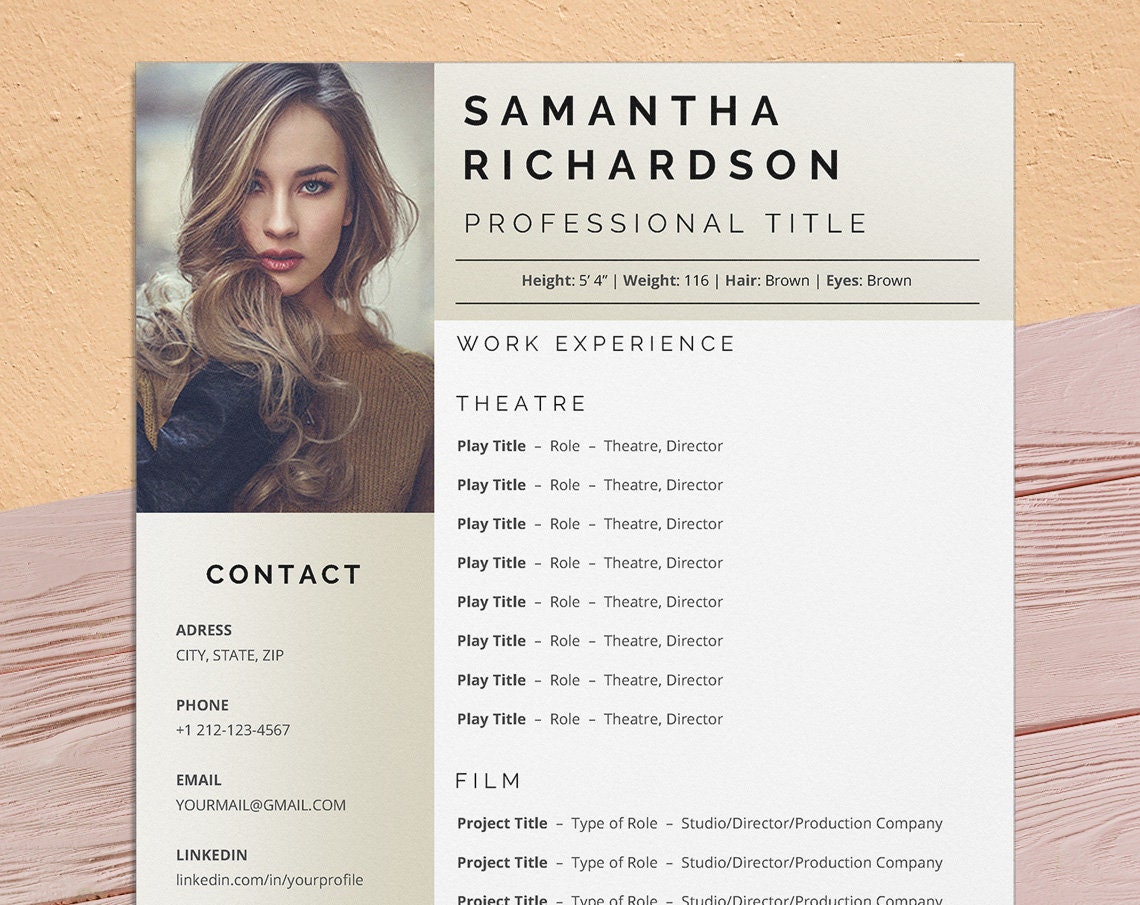 Acting Resume Template With Photo for Word Actor Actress Etsy