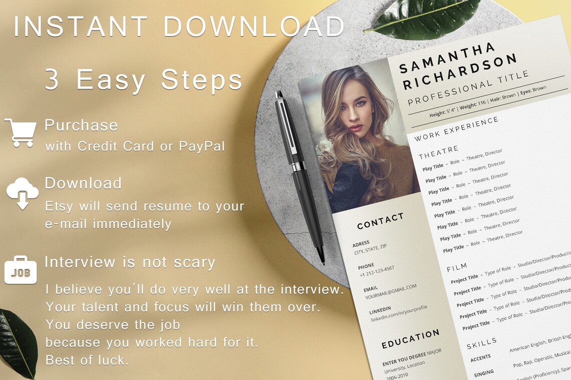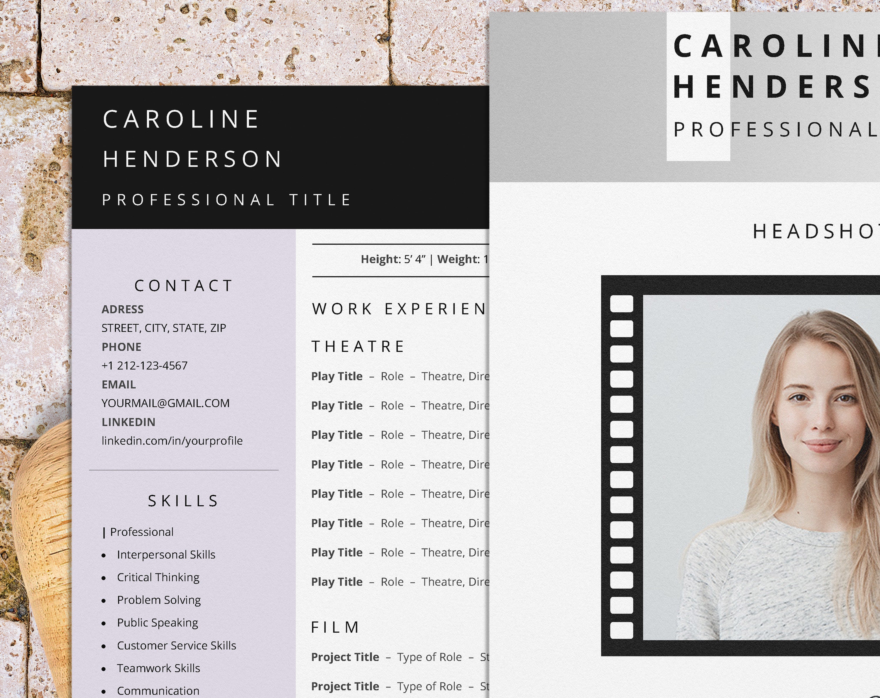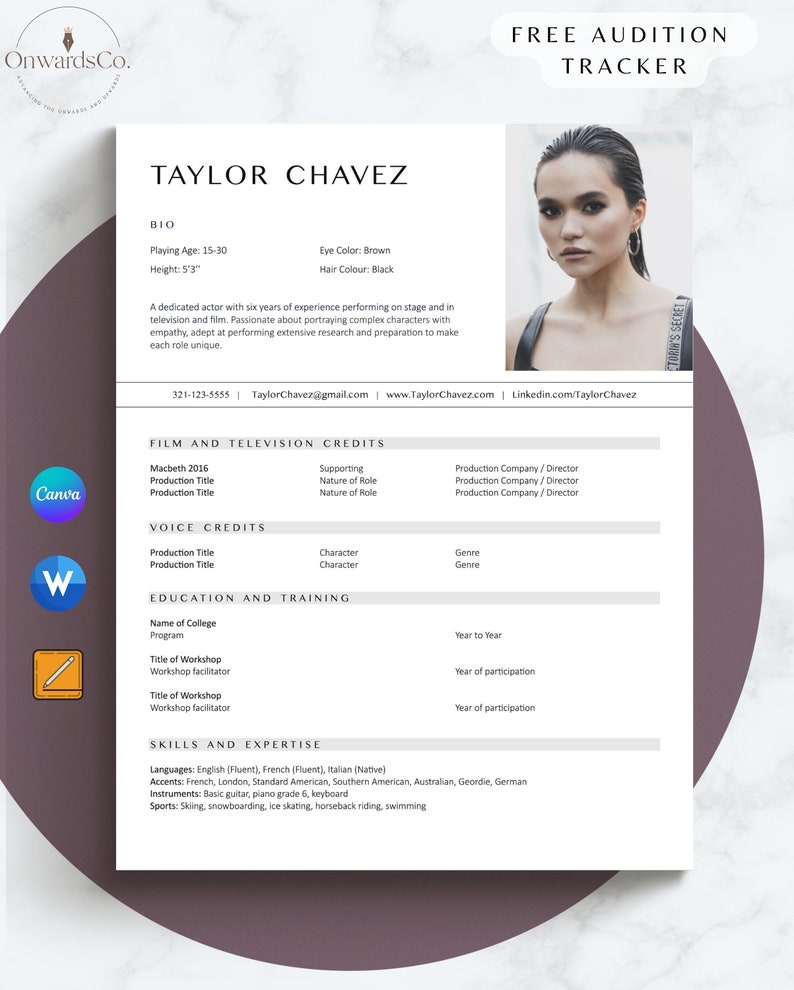 Acting Resume Template With Photo for Word Actor Actress Etsy