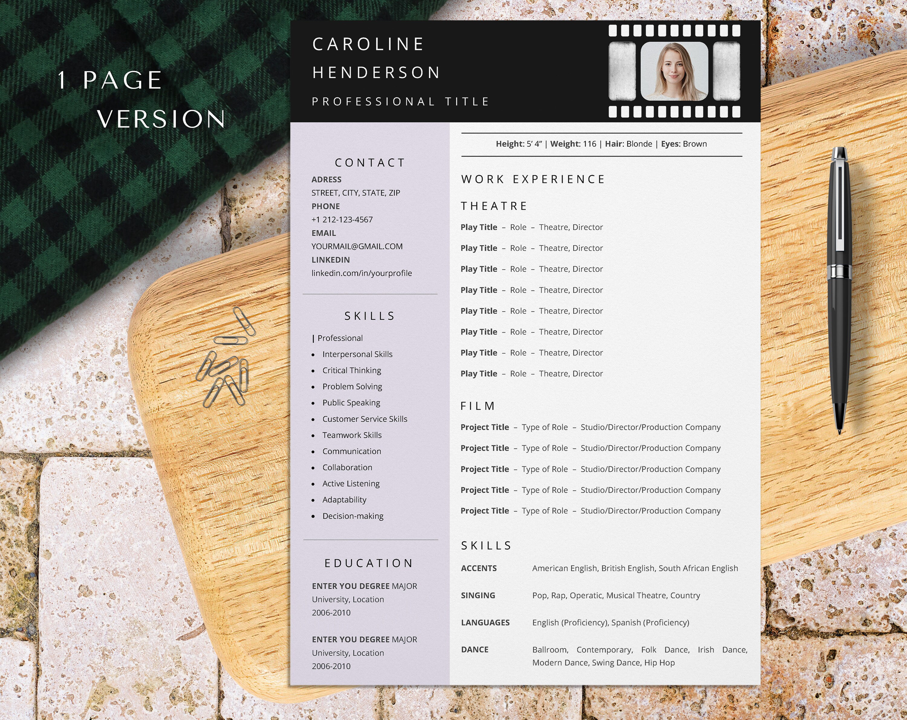 Acting Resume Template With Photo for Word: Stand Out Empowering Actor
