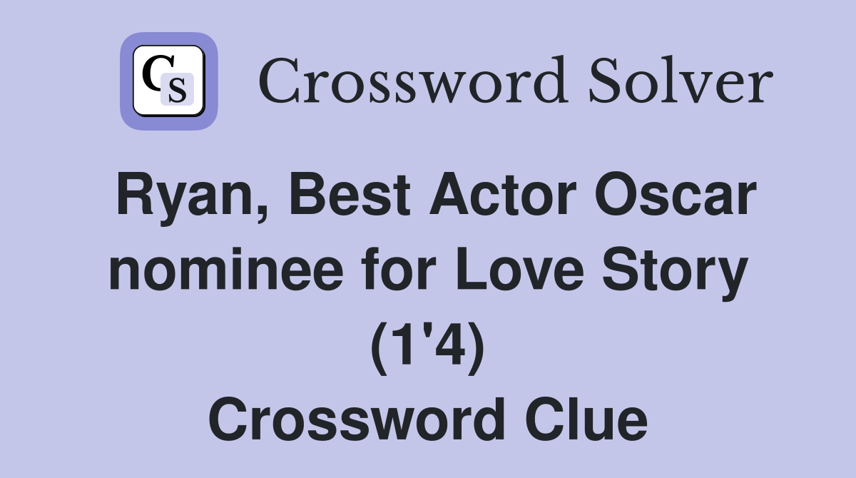 Ryan Best Actor Oscar nominee for Love Story (1 #39 4) Crossword Clue