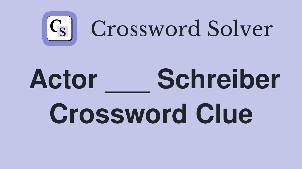 Actor Schreiber Crossword Clue Answers Crossword Solver
