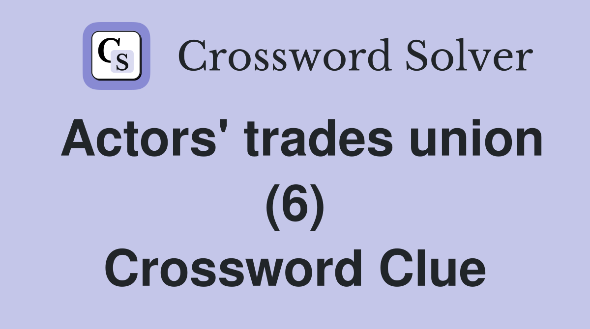Actors #39 trades union (6) Crossword Clue Answers Crossword Solver