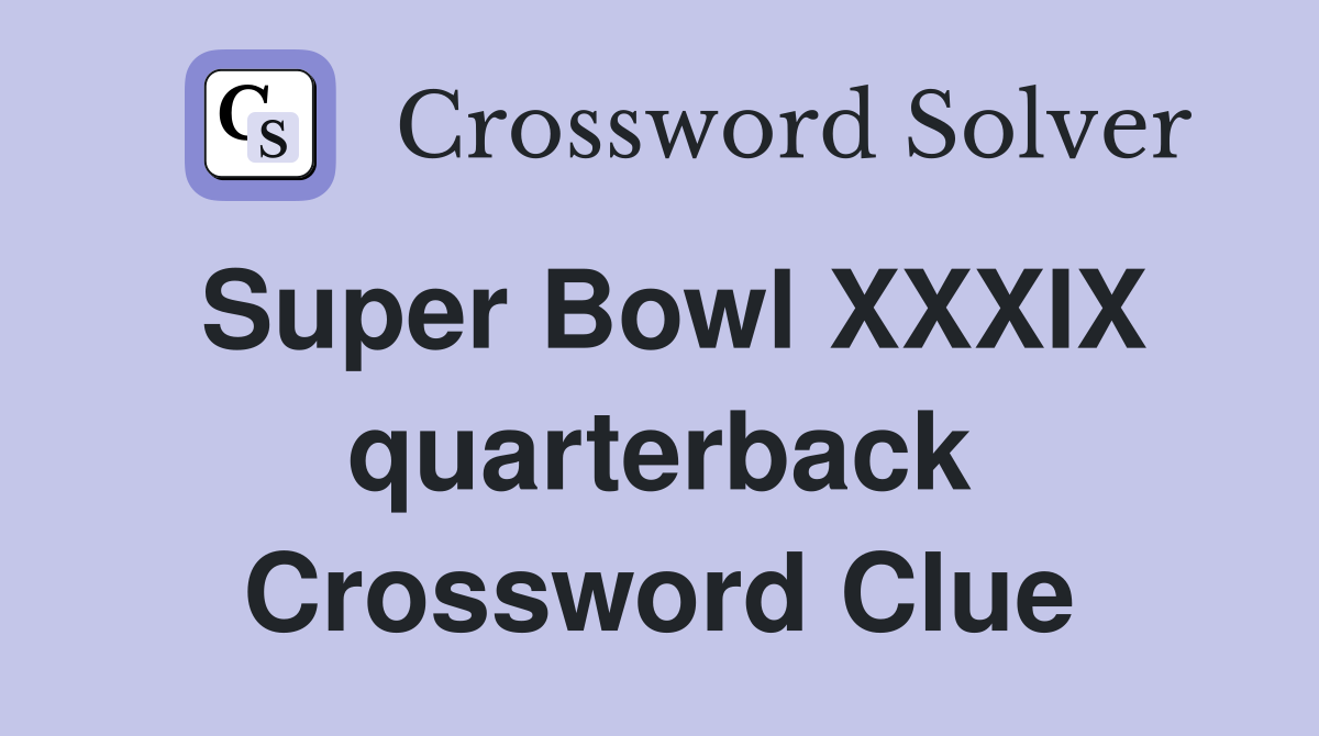 Super Bowl XXXIX quarterback Crossword Clue Answers Crossword Solver
