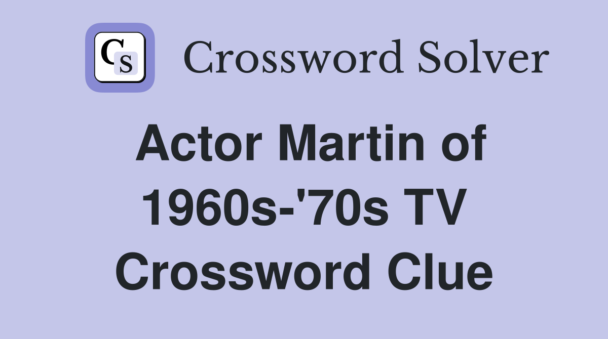 Actor Martin of 1960s #39 70s TV Crossword Clue Answers Crossword Solver