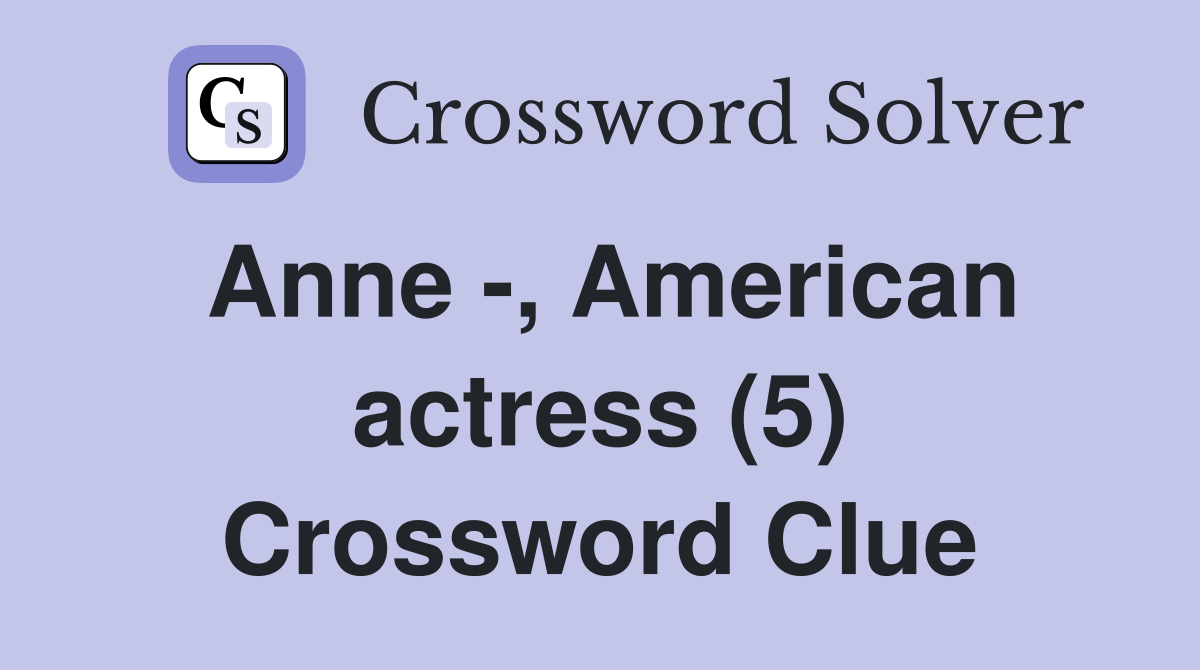 Anne American actress (5) Crossword Clue Answers Crossword Solver