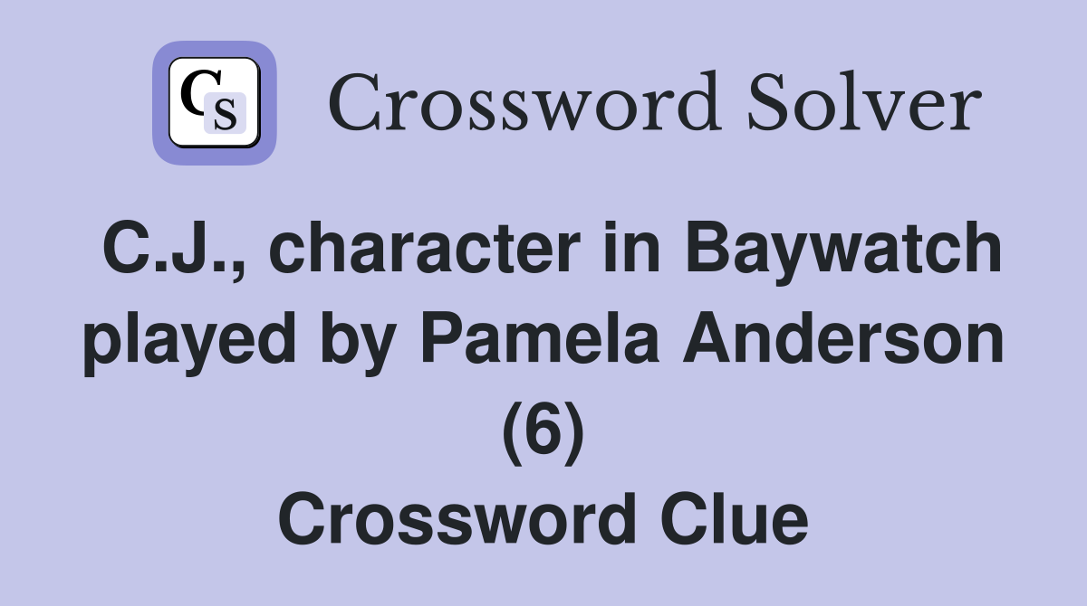 C J character in Baywatch played by Pamela Anderson (6) Crossword