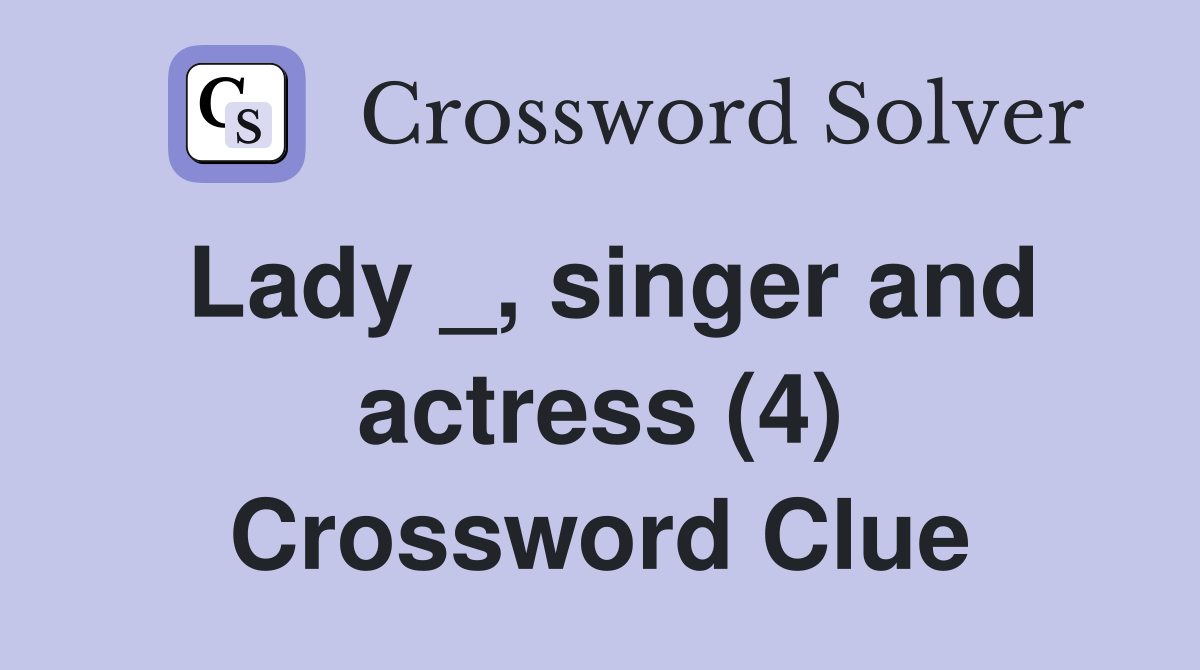 Lady singer and actress (4) Crossword Clue Answers Crossword Solver