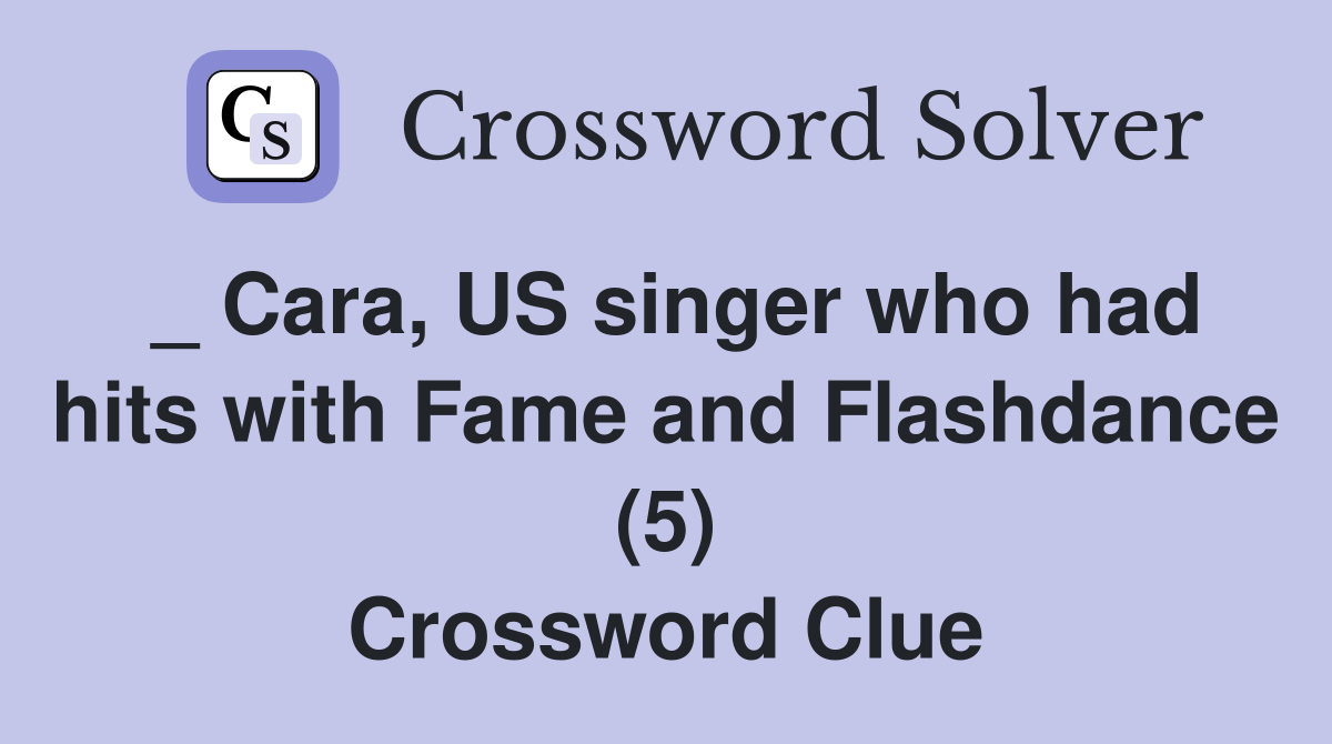Cara US singer who had hits with Fame and Flashdance (5) Crossword