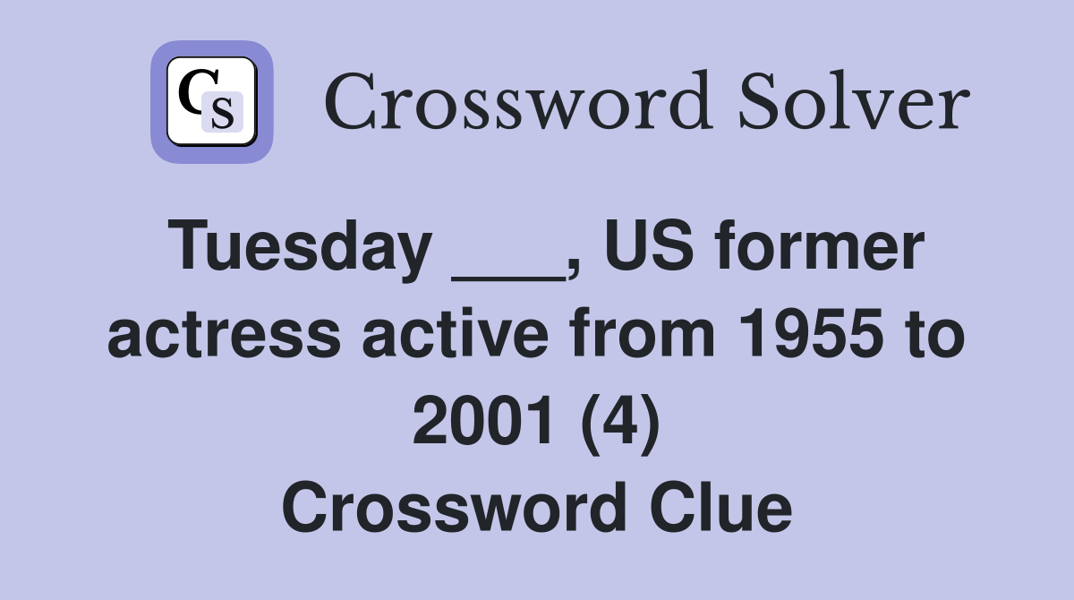 Tuesday US former actress active from 1955 to 2001 (4) Crossword