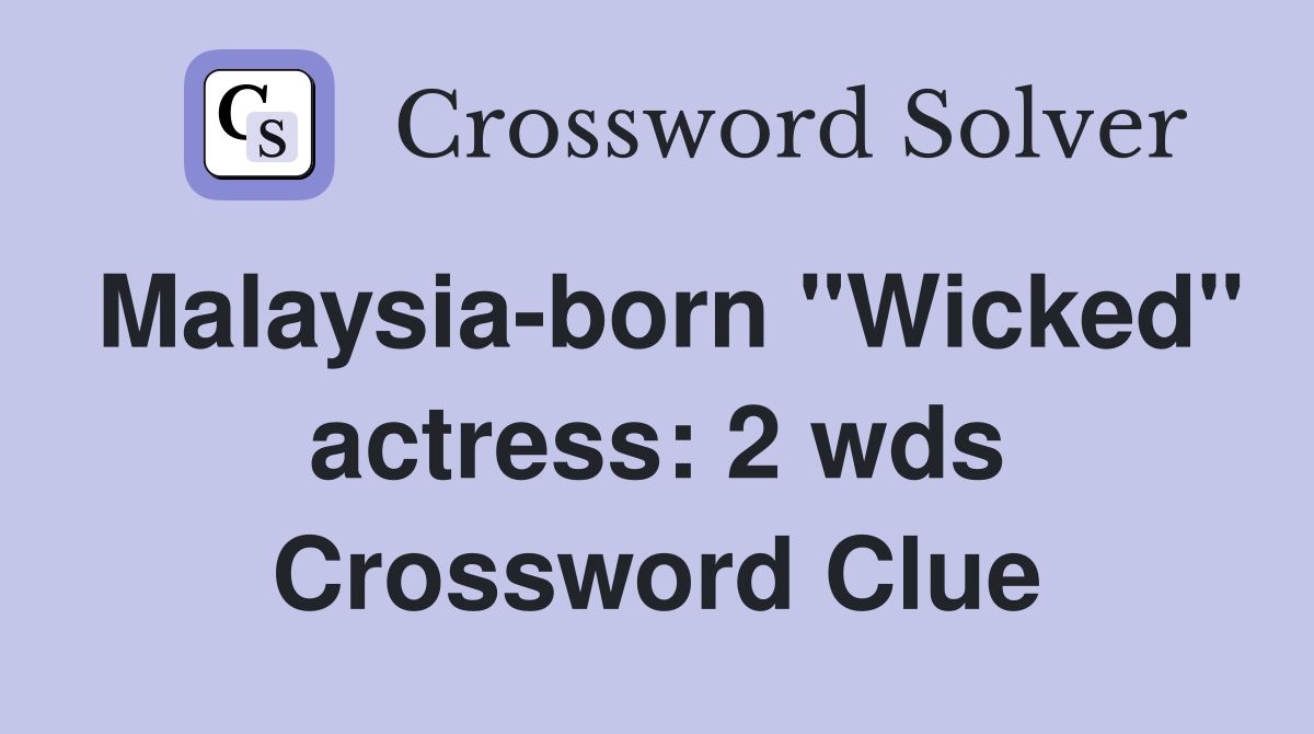 Malaysia born quot Wicked quot actress: 2 wds Crossword Clue Answers