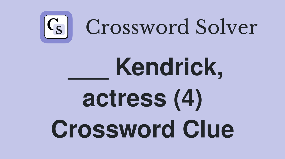 Kendrick actress (4) Crossword Clue Answers Crossword Solver