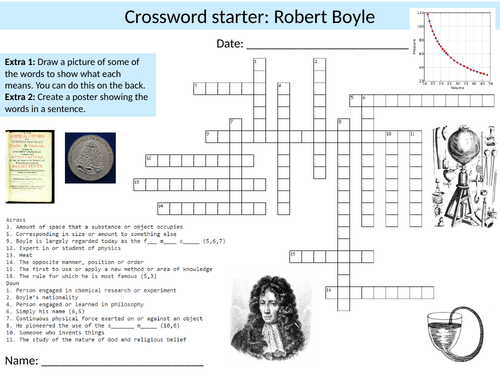 Robert Boyle Crossword Sheet Starter Activity Keywords Cover Famous