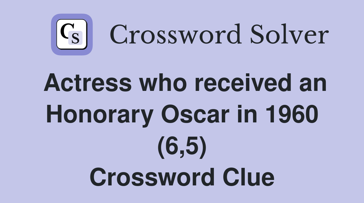 Actress who received an Honorary Oscar in 1960 (6 5) Crossword Clue
