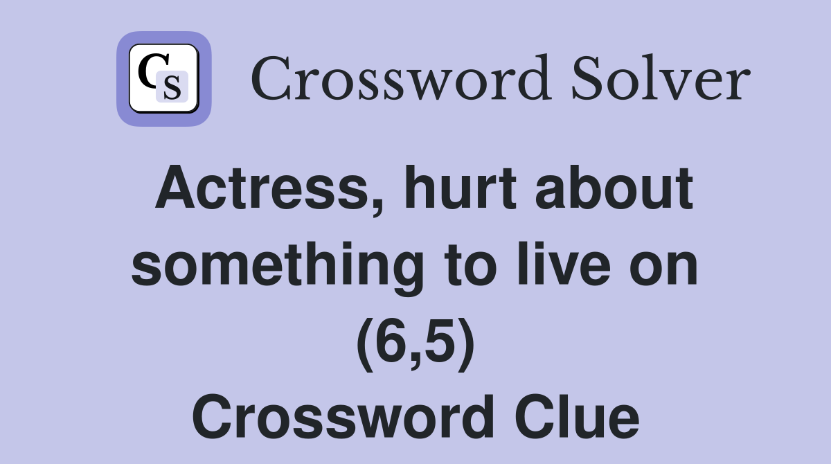 Actress hurt about something to live on (6 5) Crossword Clue Answers