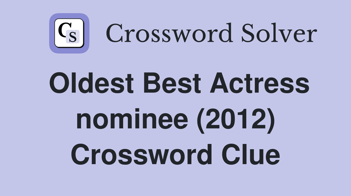 Oldest Best Actress nominee (2012) Crossword Clue Answers Crossword