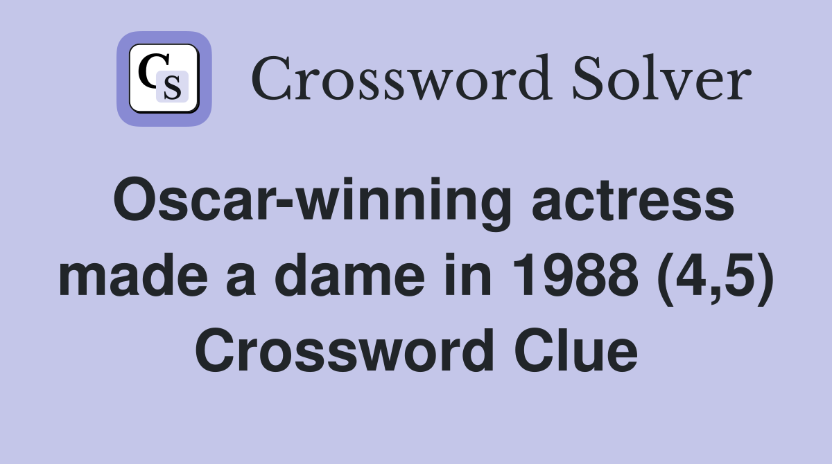 Oscar winning actress made a dame in 1988 (4 5) Crossword Clue