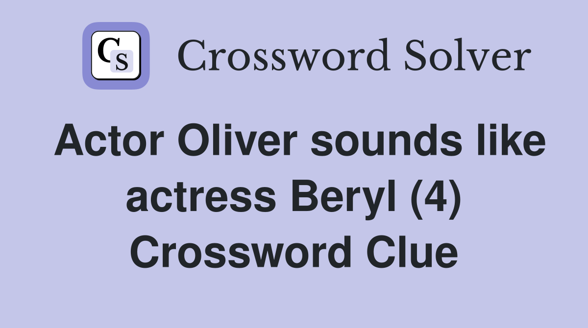 Actor Oliver sounds like actress Beryl (4) Crossword Clue Answers