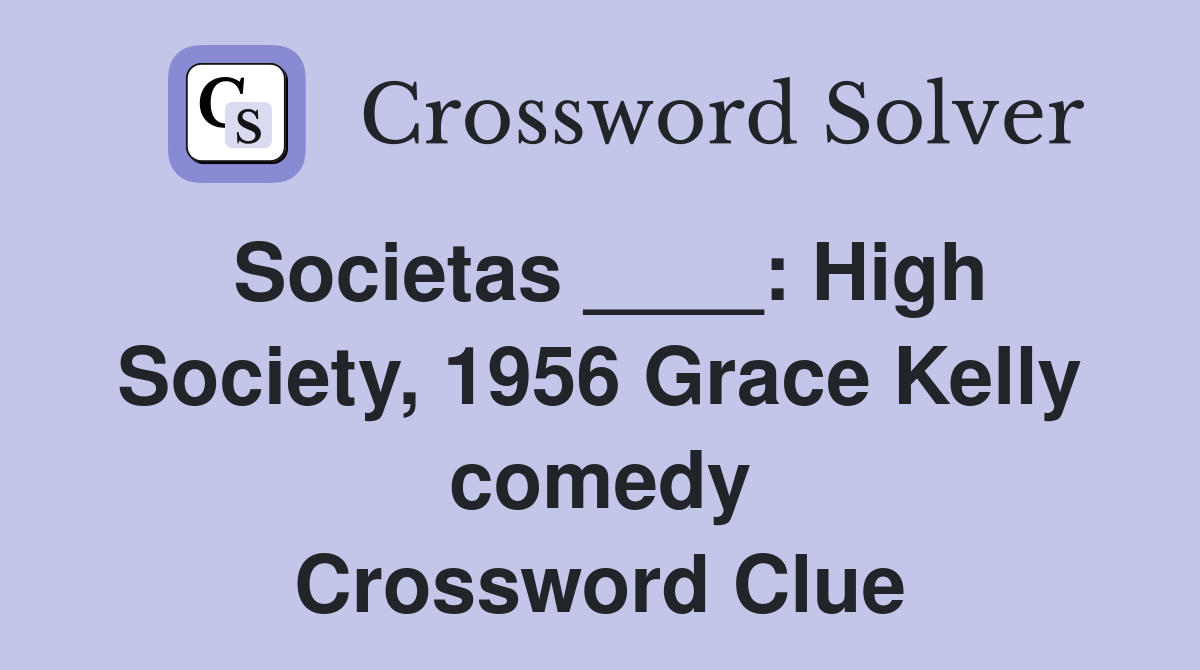 Societas : High Society 1956 Grace Kelly comedy Crossword Clue