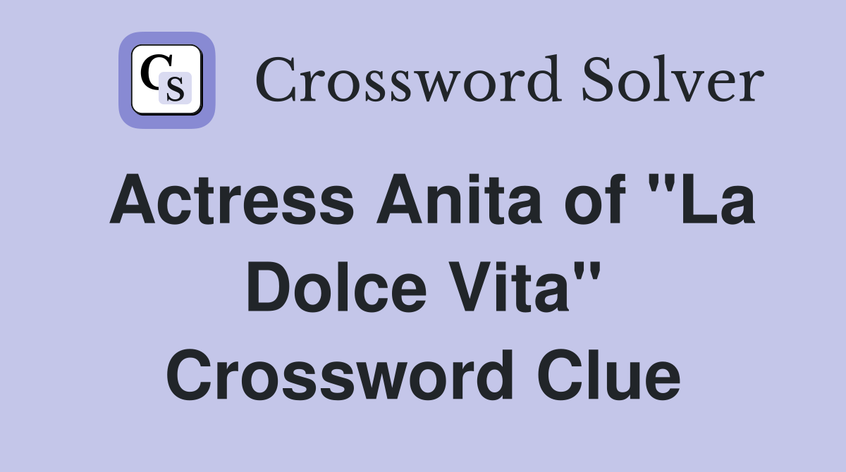 Actress Anita of quot La Dolce Vita quot Crossword Clue Answers Crossword