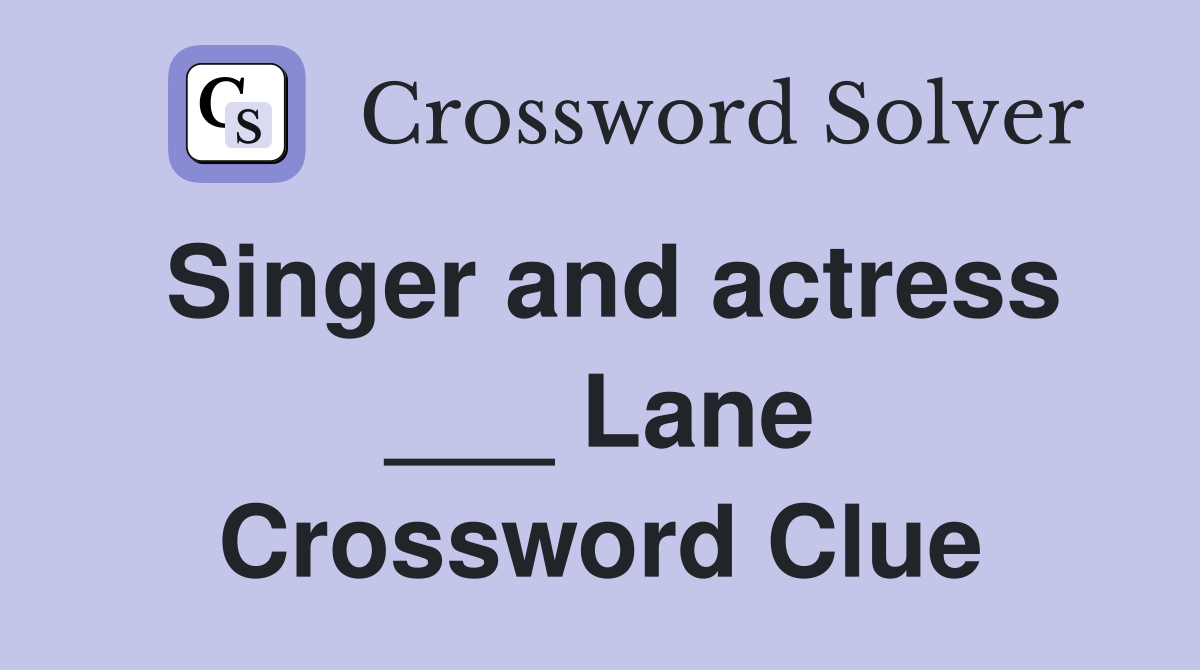 Singer and actress Lane Crossword Clue Answers Crossword Solver
