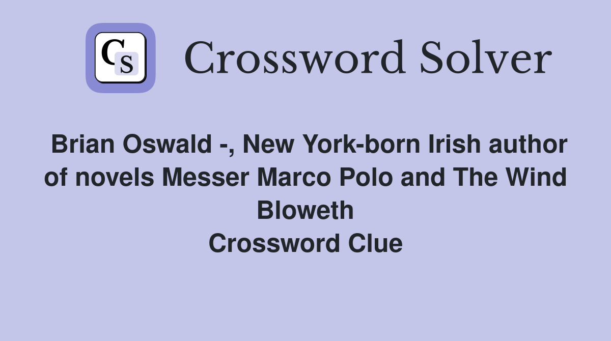 Brian Oswald New York born Irish author of novels Messer Marco Polo