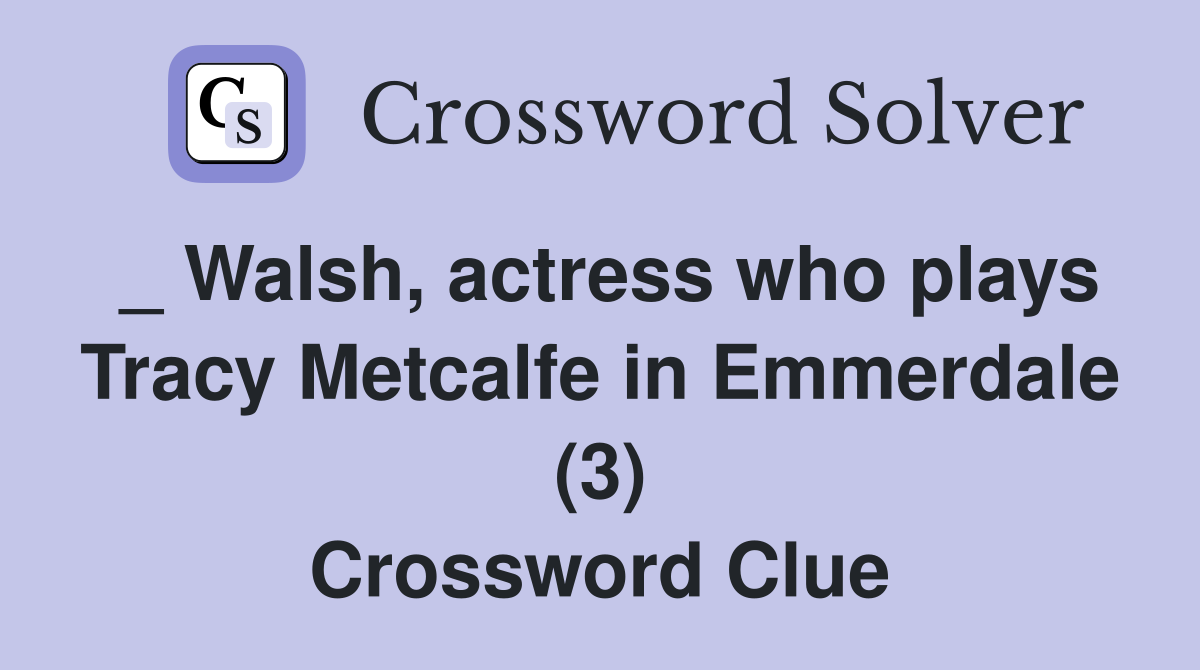 Walsh actress who plays Tracy Metcalfe in Emmerdale (3) Crossword