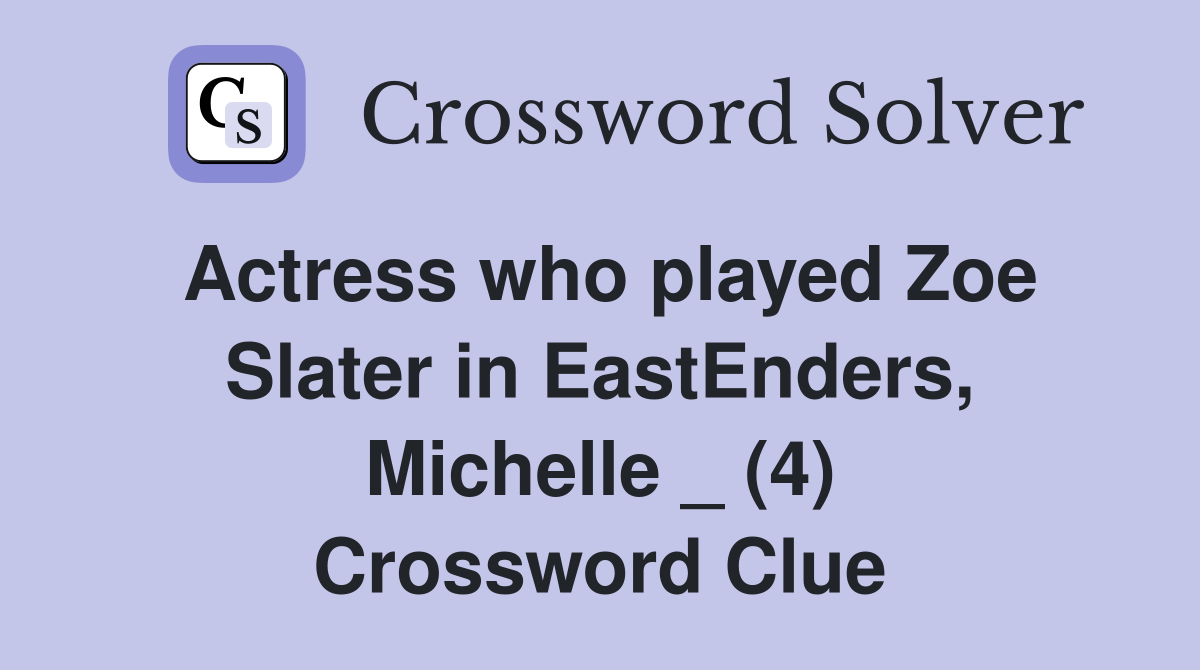 Actress who played Zoe Slater in EastEnders Michelle (4) Crossword